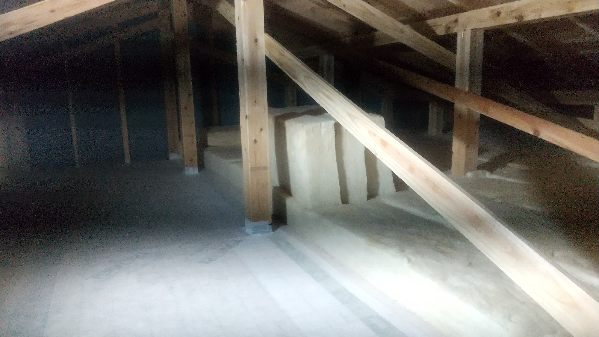 この桁上断熱の場合は、屋根裏にある面材の上に敷いてくいくことで、束以外障害になるものが無い状態で施工が可能です。