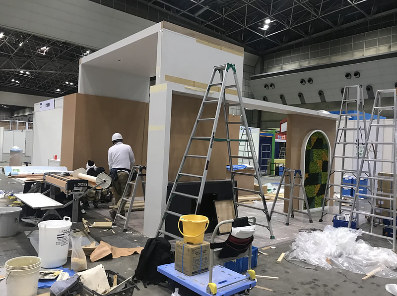 木工ブースはオーダーメイド性が高い分、スケジュール管理と予算設定が重要です。設計段階で明確なスケジュールを組み、製作費用や搬入・撤去費用も考慮しながら全体コストを把握します。木工ブースはさまざまな形を新規で制作する都合上高くなりがちです。1コマ(3m×3m)あたり50万円程度の費用がかかることが多いです。