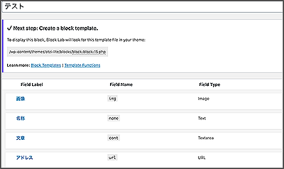 作ったカスタムブロックはGutenbergで表示されるので、確認と修正を行います。