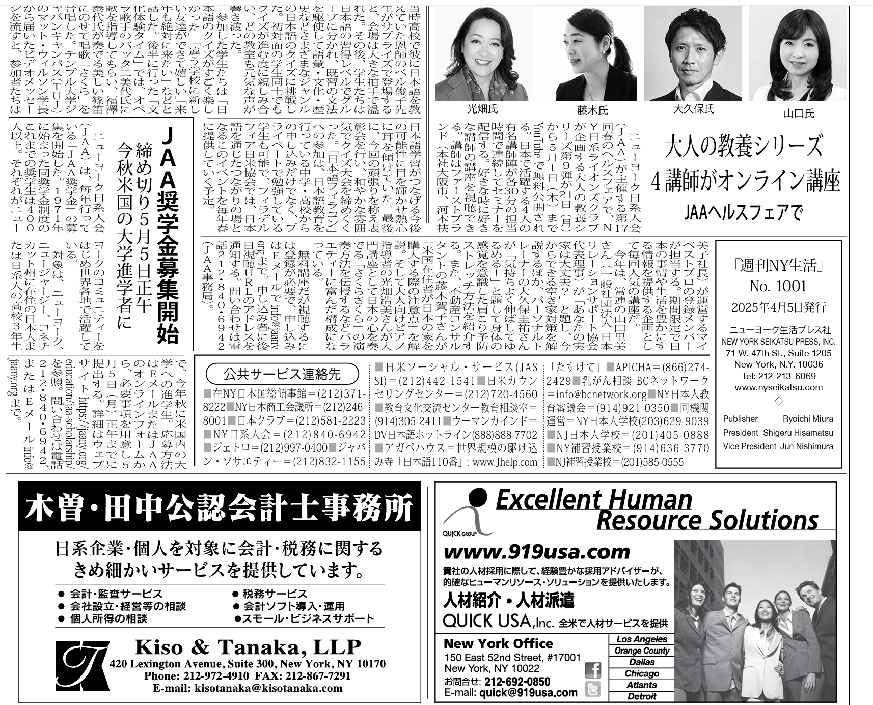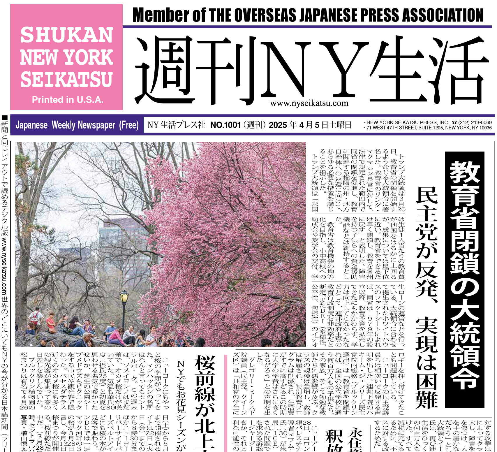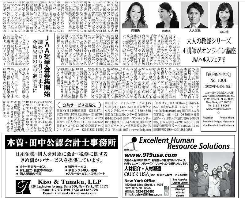 「週刊NY生活」4月5日号