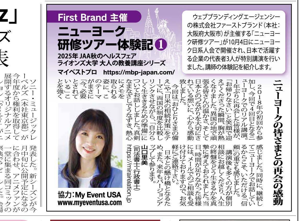 その際の私の感想を、地元紙である「週刊NY生活」様が、