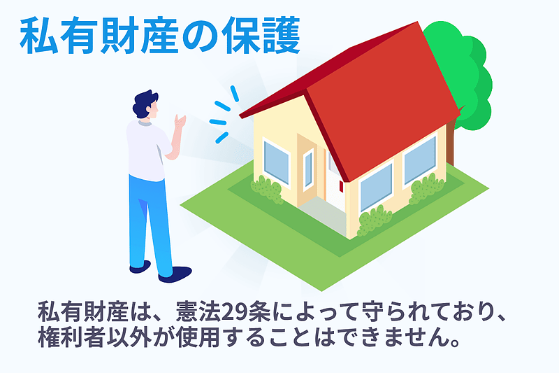 この私有財産は、日本国憲法第29条により「財産権」として保障されています。