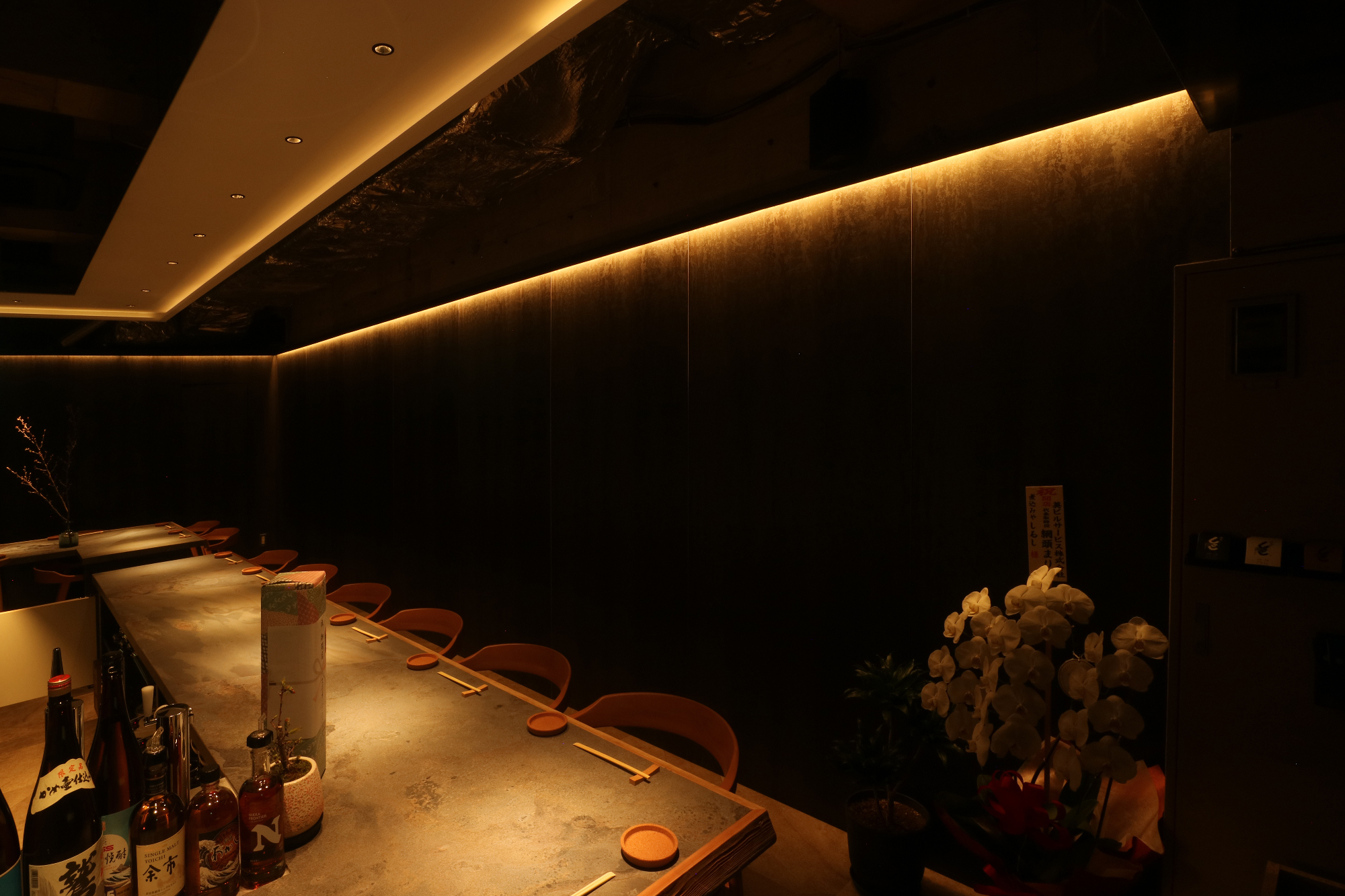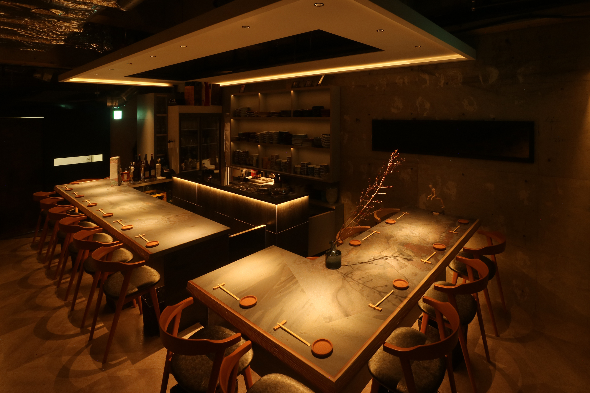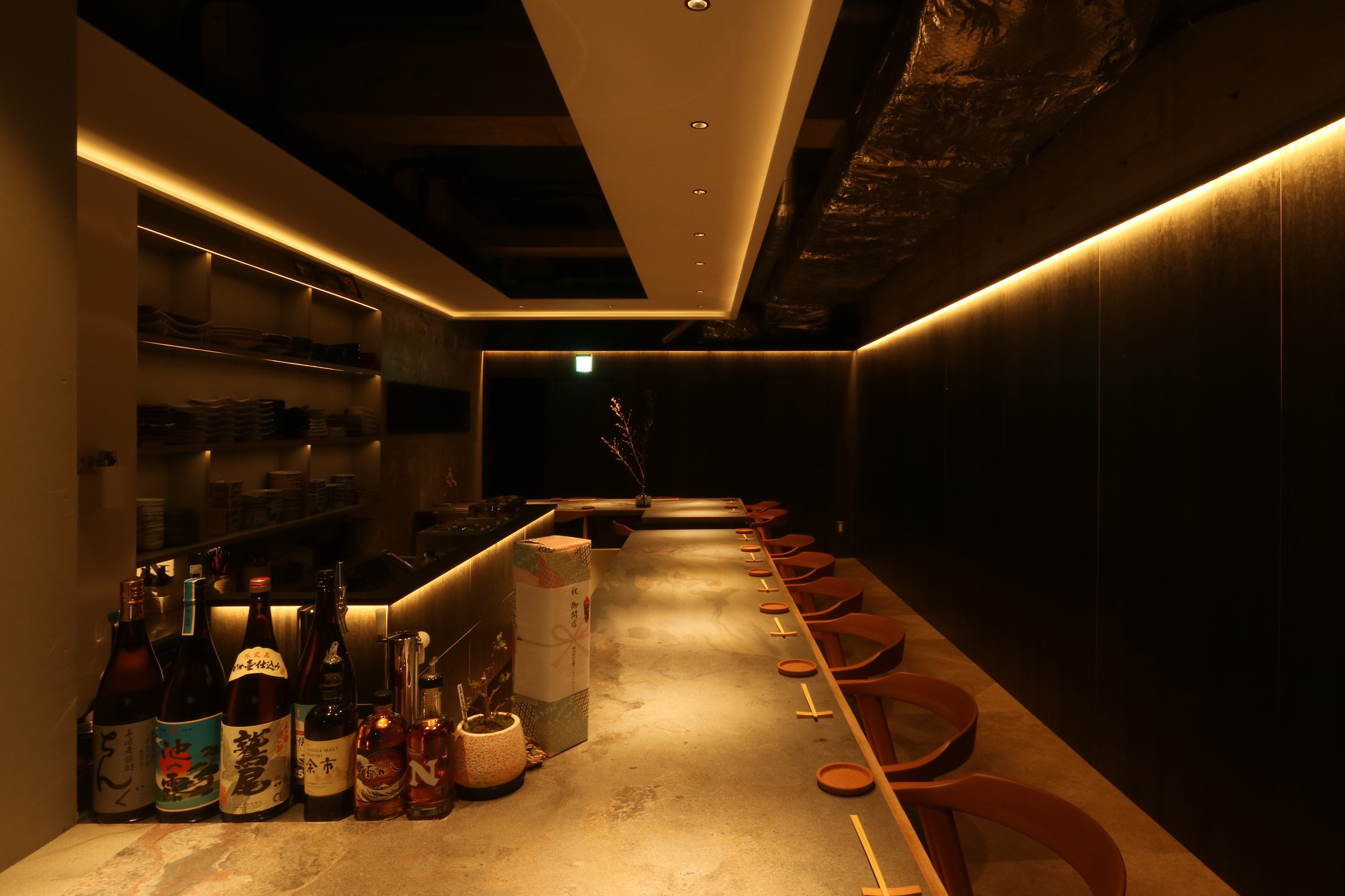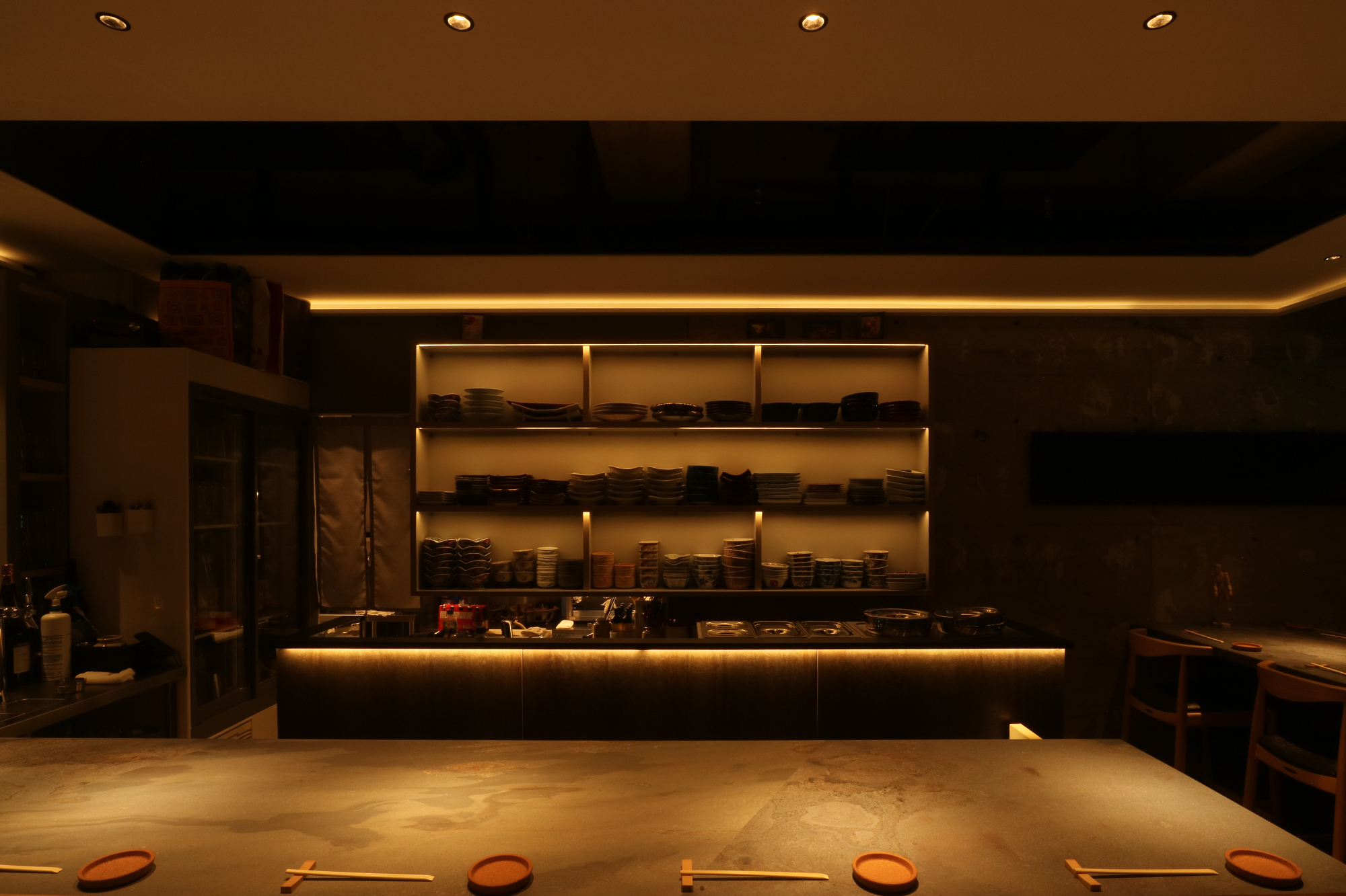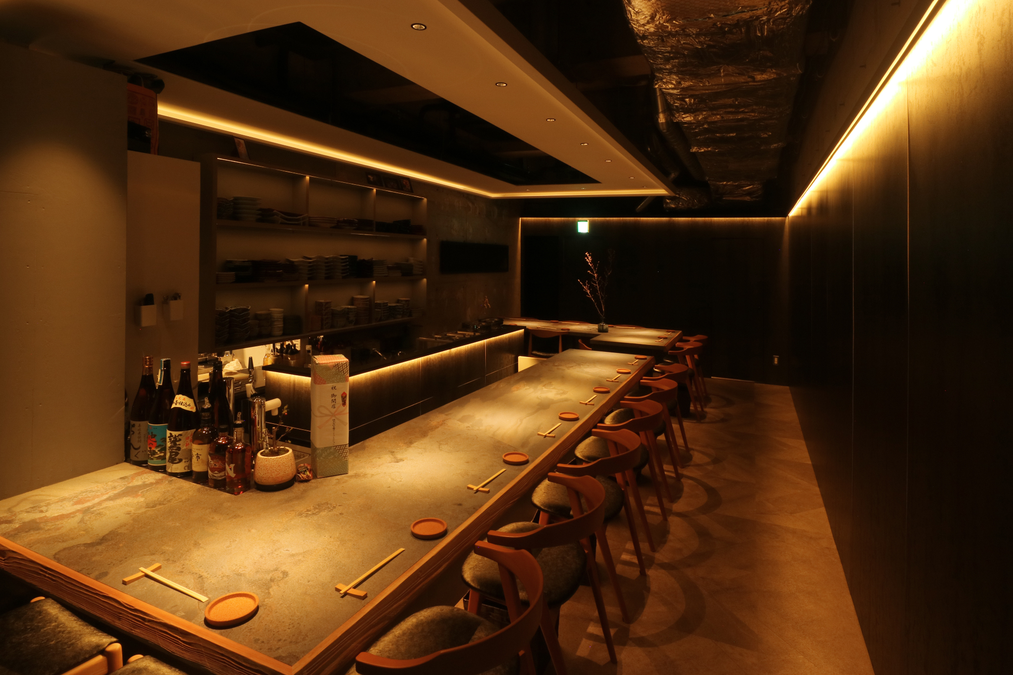「物件が出てきたから見てくれる?」とオーナー様からご連絡で現調へ。残置の造作買取があるので活用出来るものは活用して欲しい。とのご要望を踏まえてプランニングスタート。が、既存を残してレイアウトするとカウンターの席数を増やしたい。というご要望とはマッチしない。かといって厨房区画を壊しての作り直しは予算的な部分でボリュームが。思い切っって厨房区画の半分ほどを客席に被せて増設した平面プランをご提示。 既存活用したプランも作り、比較して貰ったので即決となりました。あとはデザイナー大工が一人作業で予算の問題をなんとかかんとか。隣の飲食店のお姉さんに「いっつも一人でやってて、すごいですねー。」なんて。とまぁ、お正月も挟んだので解体から含めて4ヶ月ちょっとかかりました。でもですね、やっぱりデザインして形になって喜んでもらって生き生きとスタッフの方がお店をやっている姿を見ると嬉しい限りですね。
