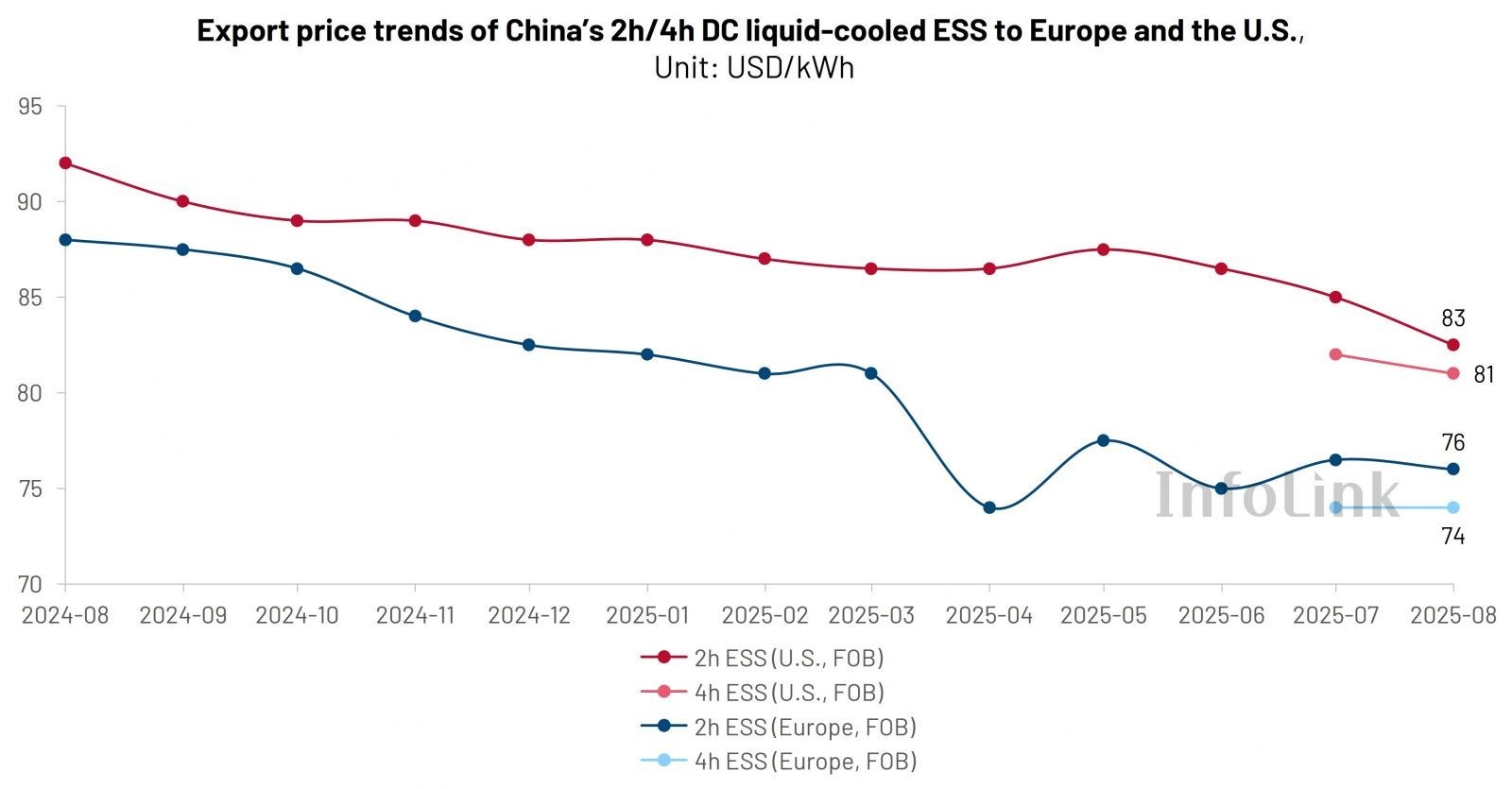 InfoLinkは主流仕様の急速な進化を反映して、4時間稼働システムの蓄電システム価格を追加しました。