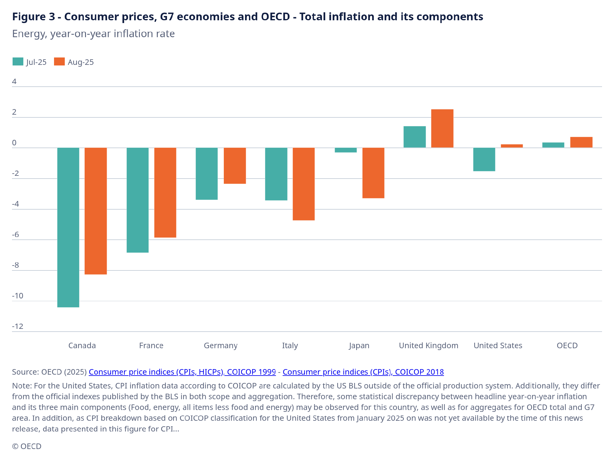 図3 - 消費者物価、G7諸国およびOECD - 総合インフレ率 (エネルギー)