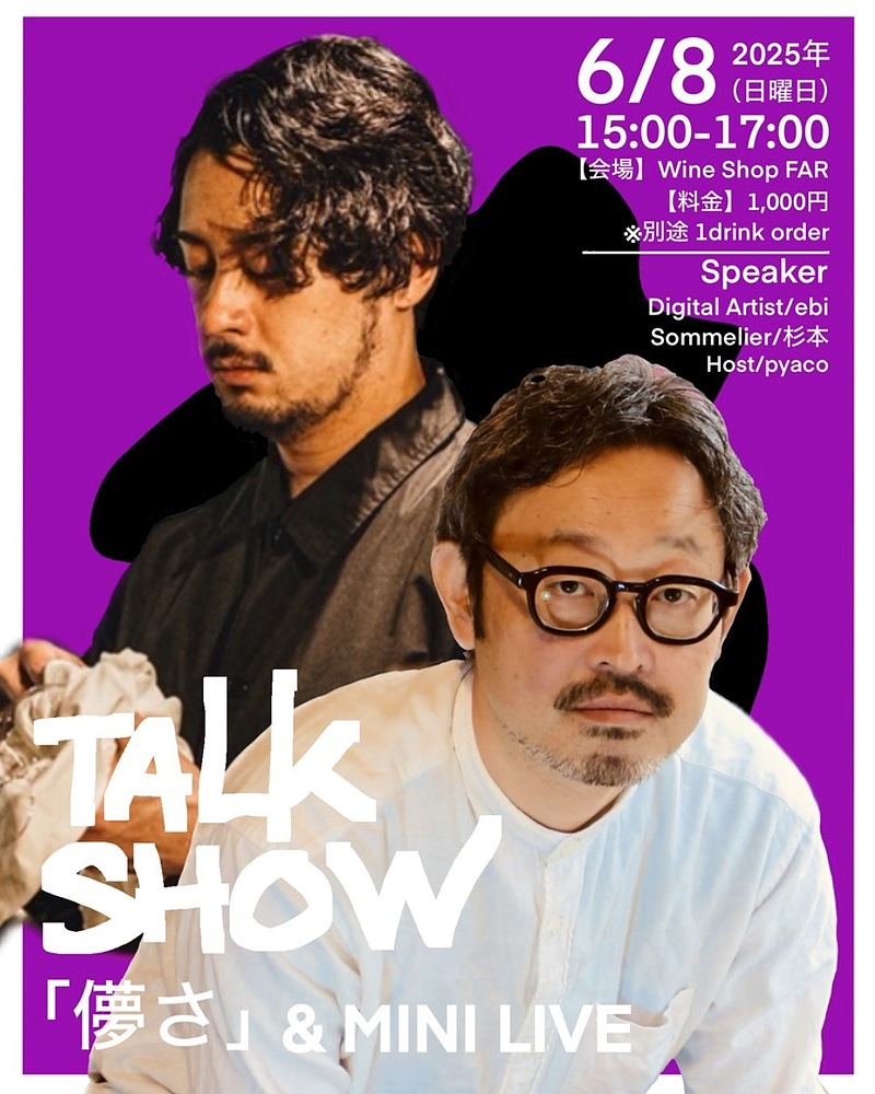 私ebiと、会場のオーナーでありソムリエの杉本様とで【TALK SHOW & MINI LIVE】を開催いたします。