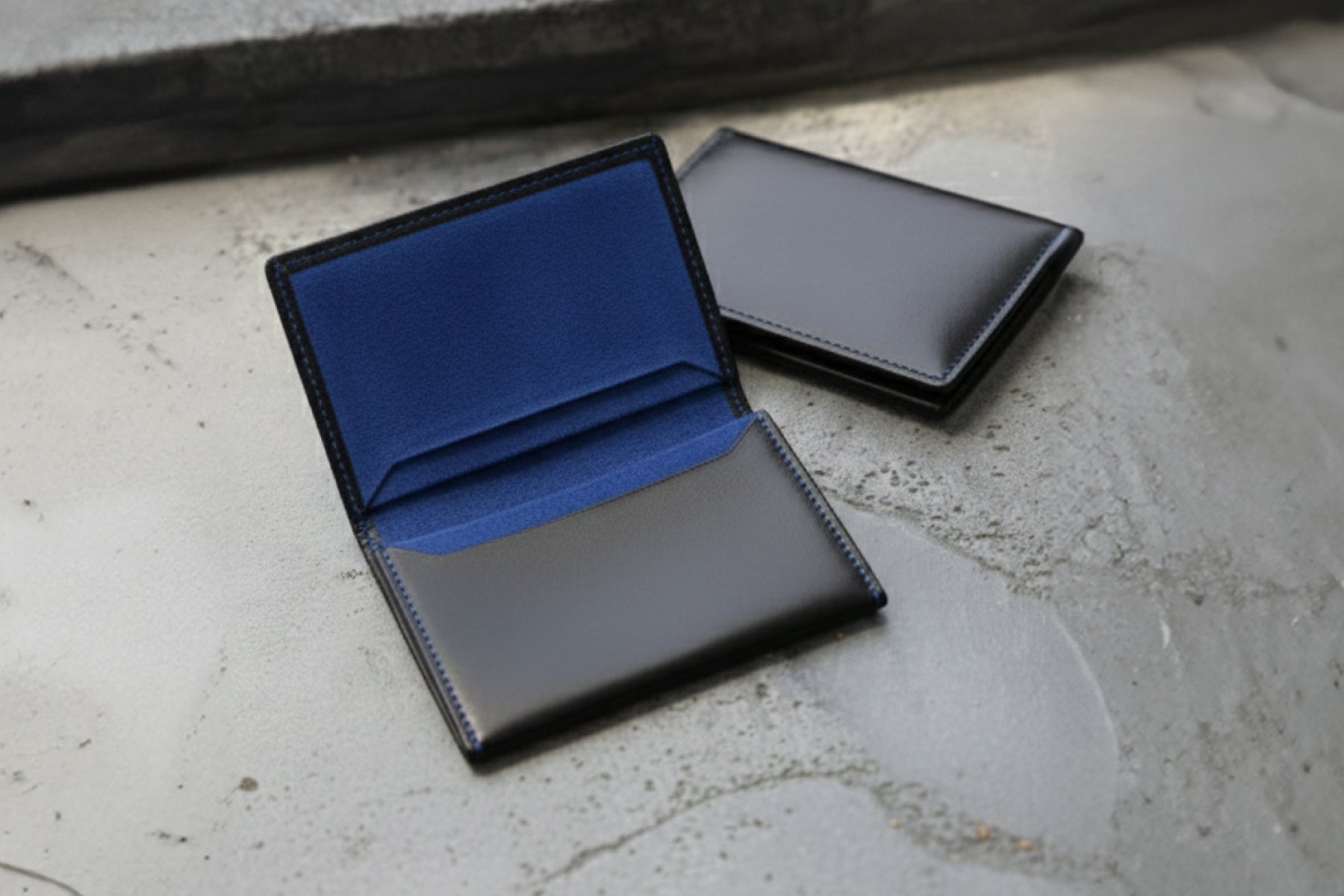 最高級コードバンで漆黒×ロイヤルブルーの名刺入れを