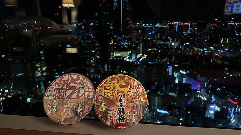 ラグジュアリーホテルのスイートルームから夜景をみながら「どん兵衛」で年越そばってギャップがあって笑えるでしょ笑