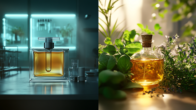 合成香料は、人工的に作られた分子構造で、一部は石油由来のものも。