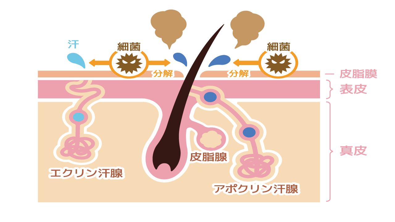 「汗のニオイが気になる」と思いがちですが、実は汗自体は無臭に近いもの。