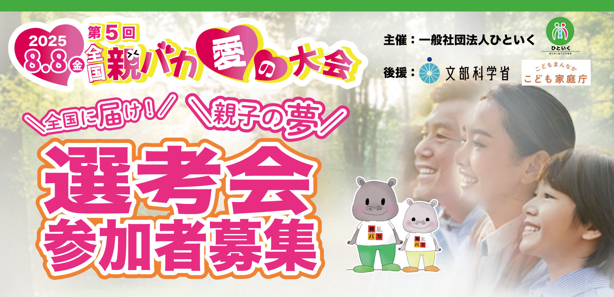 この大会では、全国から選ばれた“親バカ愛”に満ちた親子が一堂に会し、文部科学大臣賞を目指して夢の舞台で語り合います。