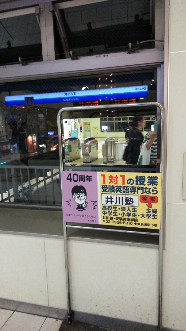 ・・・・・・お隣駅(西武池袋線)「江古田駅」に「井川塾・受験英語学院」の駅広告を掲載中。(改札口の鏡です!)