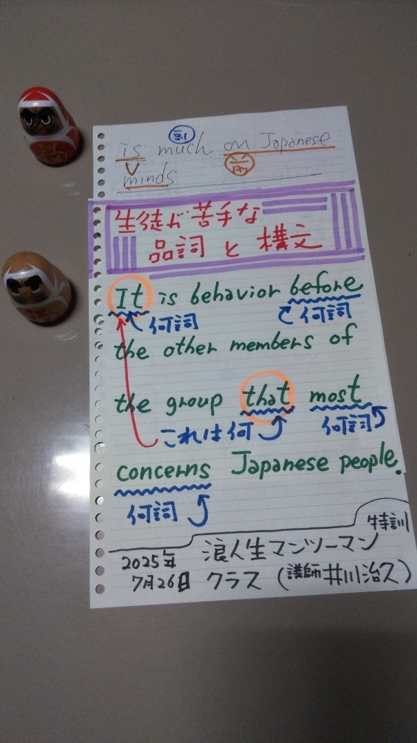 (夏休み、7月下旬の授業で)浪人生に話した「章ごとに英文法を覚えていく意味」とは?
