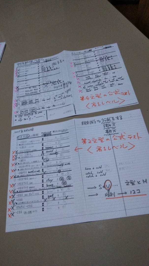(5文型の公式テスト)6枚中、3枚完了。3枚は、白紙。