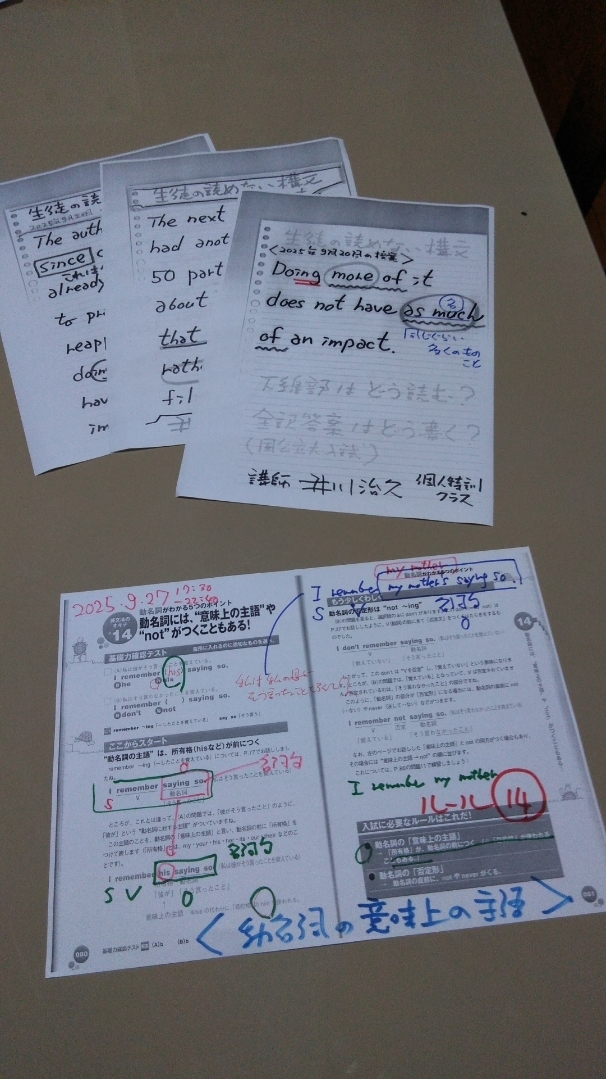 (本日は、生徒の希望で)長文はやらず「文法、構文」の授業に: