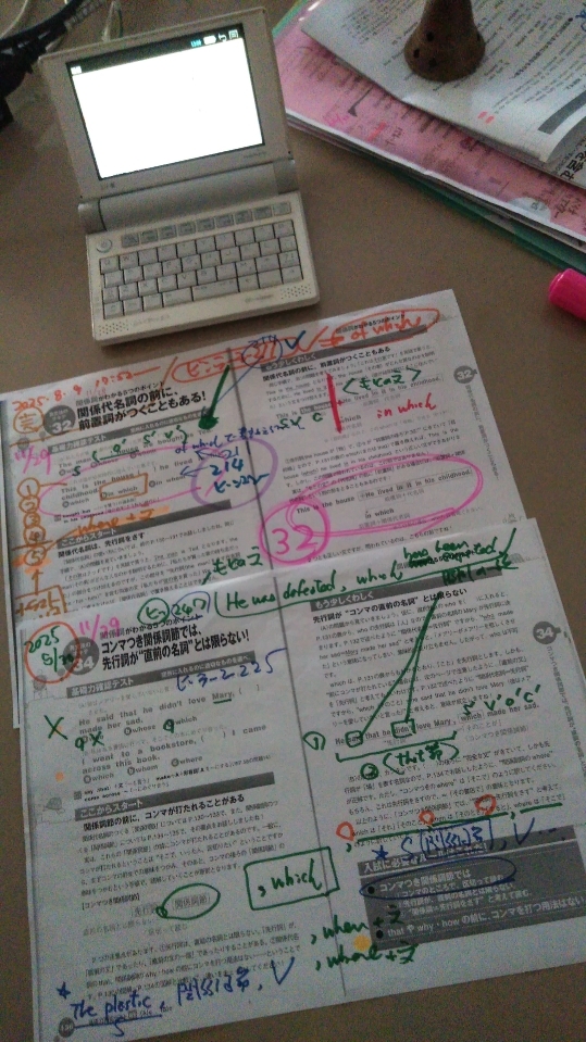 ・・・・・・なかなか覚えない所に、「濃いマジック」を買って、目立つように、線を引く!