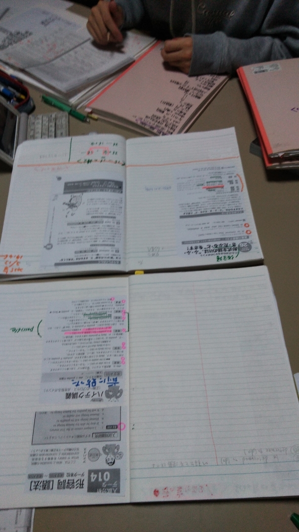 ◆突破口42のプリント・・・・・・左側、覚え直し、完了。▲右側:宿題。