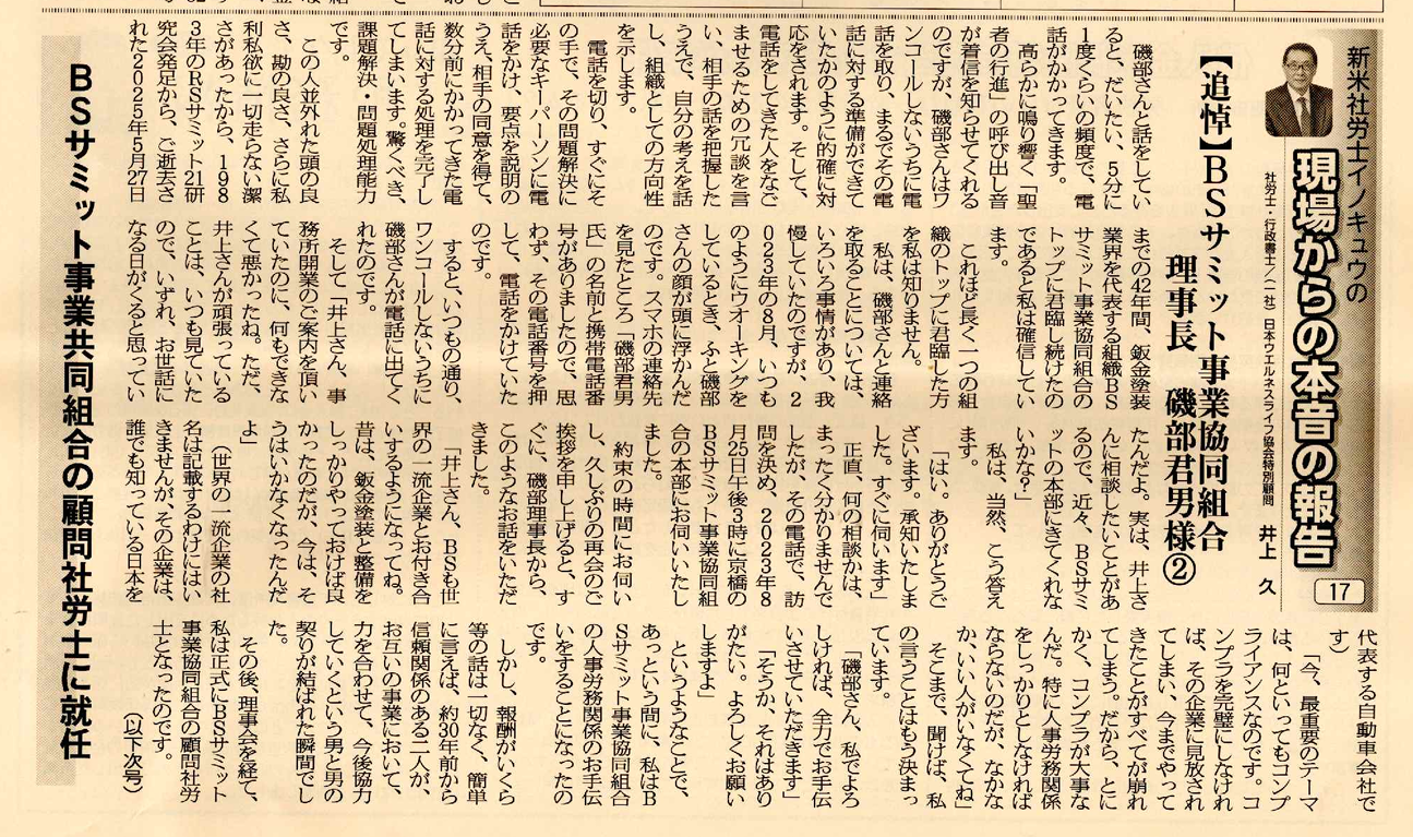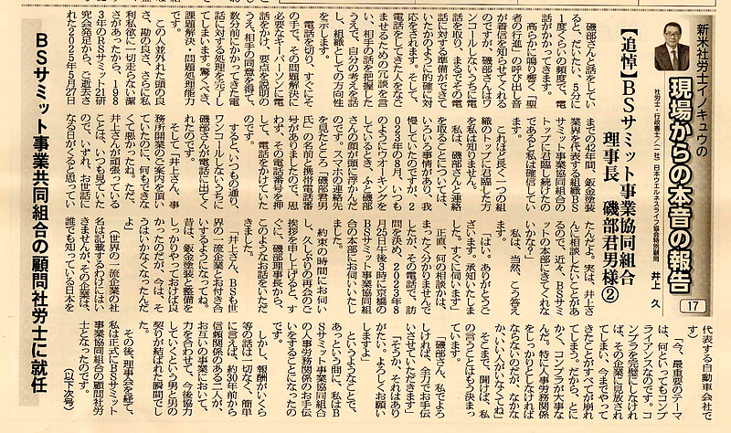 追悼 BSサミット事業協同組合 理事長 磯部 君男様(2025年8月掲載原稿)