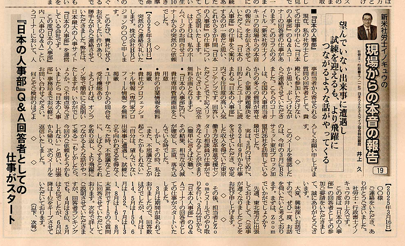 日本の人事部のQ&Aコーナーの回答者としての仕事がスタートいたしました。