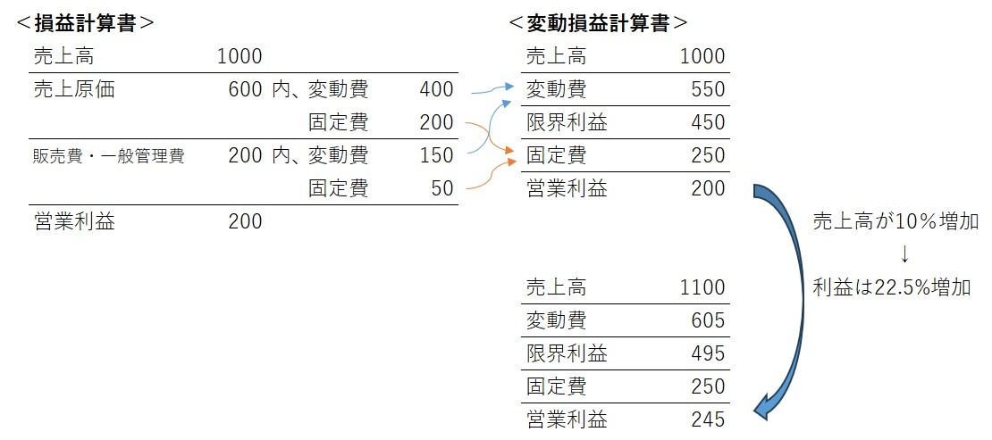 売上高が10%増加(減少)したとき、利益も10%増加(減少)するわけではありません。