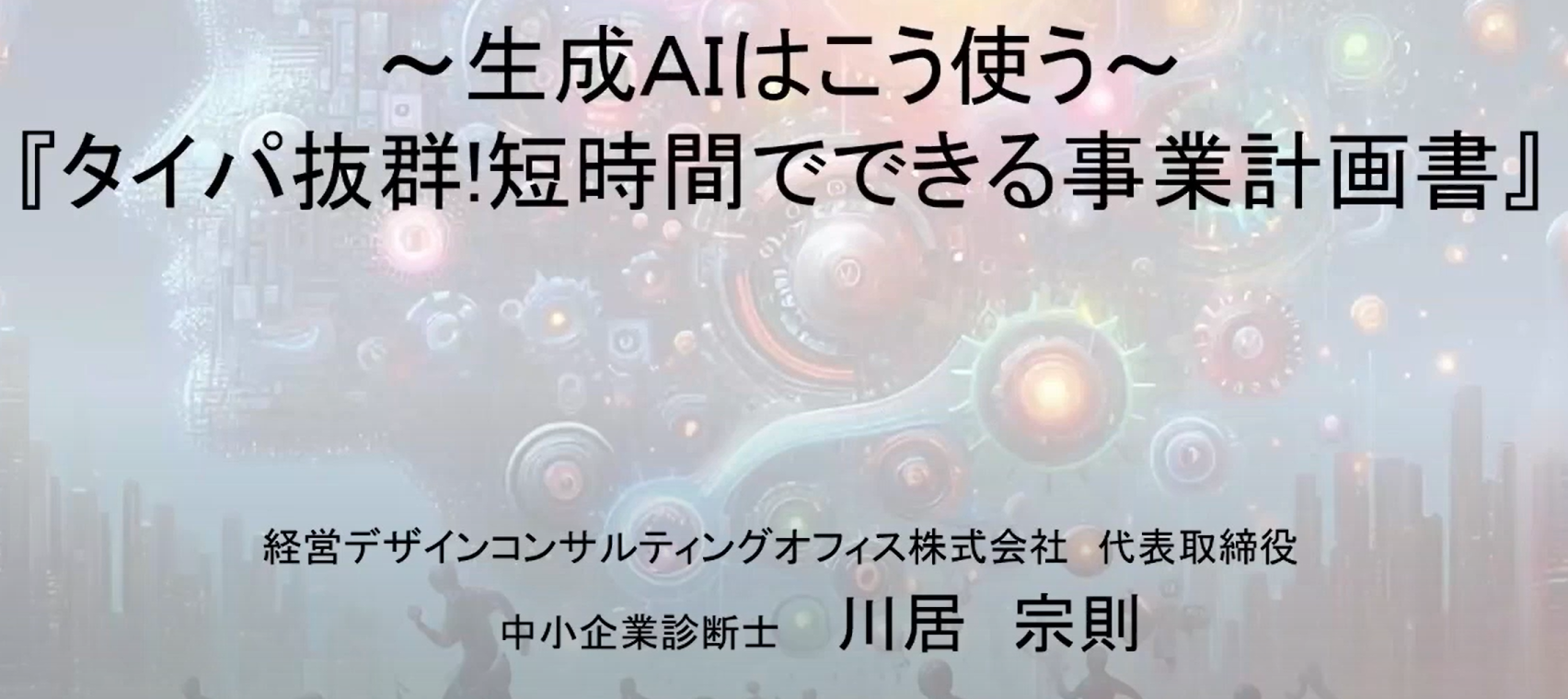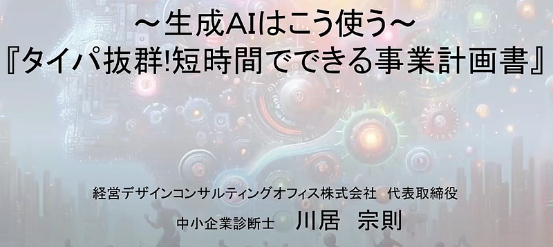 本動画では、生成AIを活用し、短時間で実用的な事業計画書を作成する方法を解説しています。講師は、金融機関で32年間勤務し、10,000社以上の中小企業を支援してきた中小企業診断士・川居宗則が、審査に通りやすい事業計画書のポイントを具体的な事例とともにお伝えします。