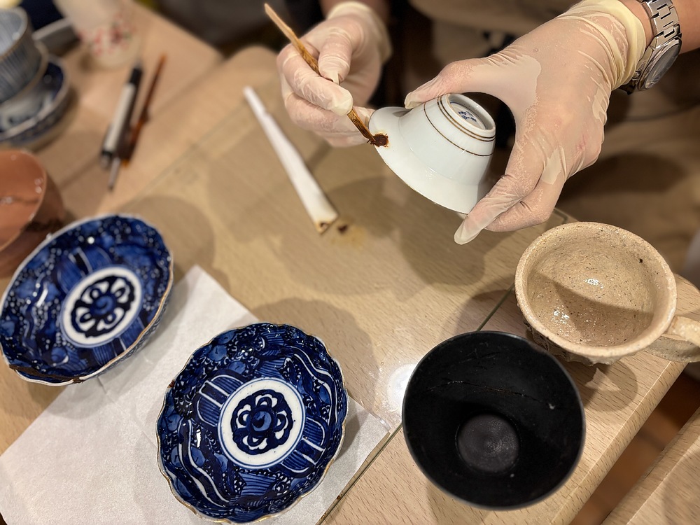 「器の修復が目的ですが、工程そのものを楽しんでいただけるのも金継ぎの魅力です。使う道具は、漆で絵や文様を描く蒔絵用のもので、日常ではなかなか触れることがありません。扱うのも、お皿やおわん、茶碗やマグカップなど形や素材も違い、常に新鮮な発見があって飽きません。あっという間に時間が過ぎてしまいます」