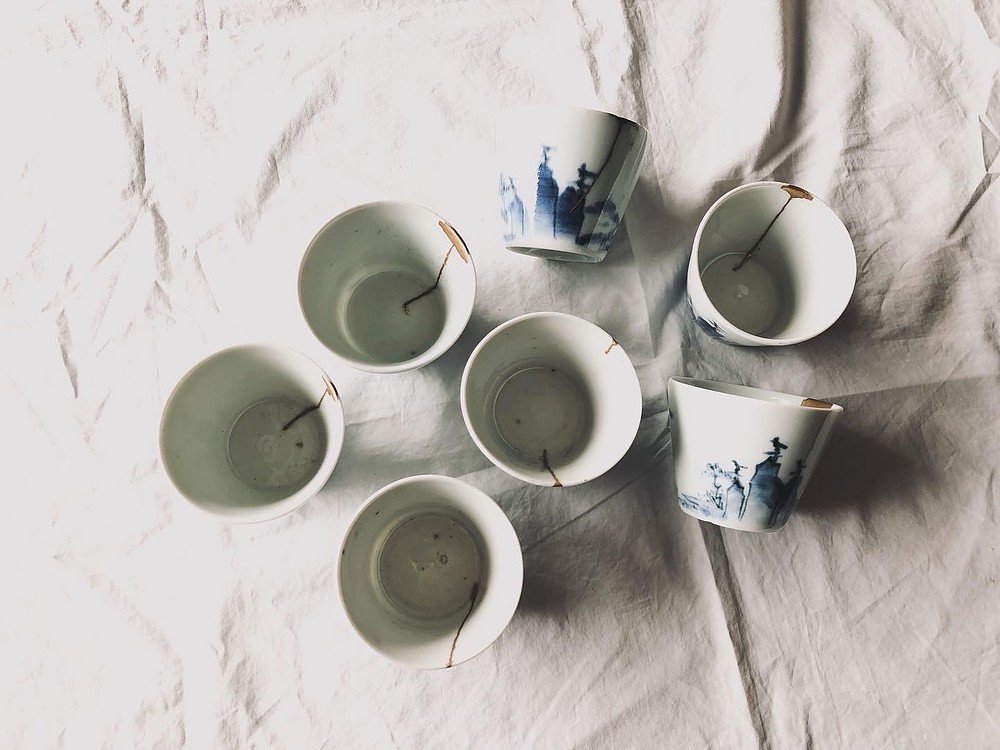 完璧を求めるのではなく傷跡をめでる美学、形あるものを尊び、繕いながら受け継いでいく哲学に魅了された遠藤さん。デザイナーとして培った美的感性も糧に、金継ぎの道に進みます。