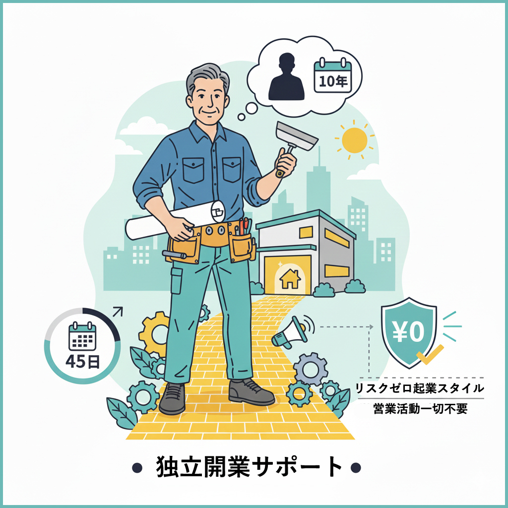 「最短で稼ぎたい」「営業したくない」という方は、最初からこのフルパッケージを選んでください。 スクール(15日)+現場研修(30日)+パートナー契約がセットになっており、最も効率よく事業主としてのキャリアをスタートできます。