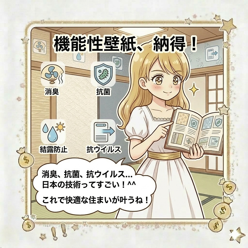 世界最強の技術: 現代の日本は、消臭・抗菌・調湿など、世界一の「機能性壁紙」を生み出し続けています。
