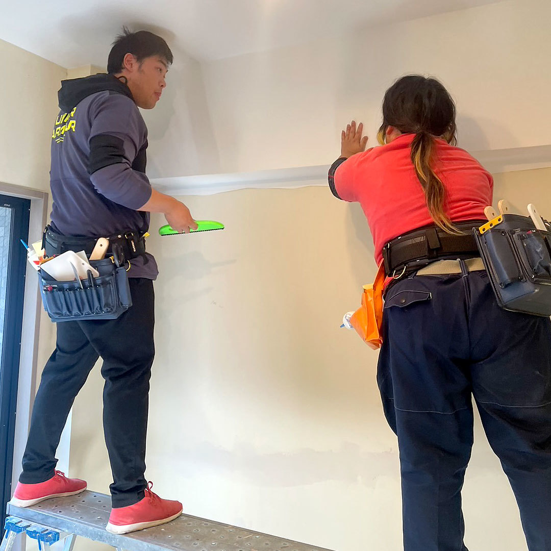 カッターを握る感覚、壁紙が吸い付く感触、道具の重み。 これらは現場で手を動かして初めて「自分の血肉」になります。