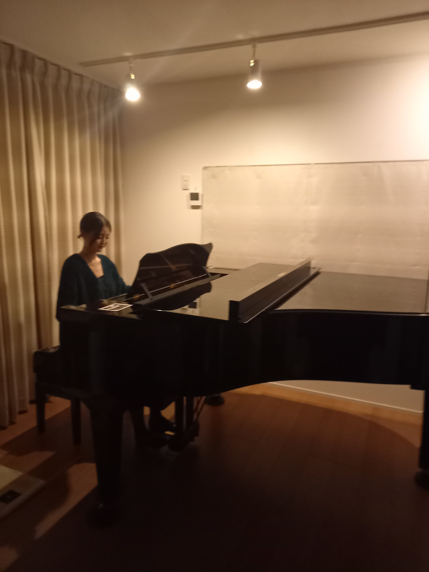 照明をさらに落として、みんなしてくつろぎつつ娘のピアノをたくさん聴きました。