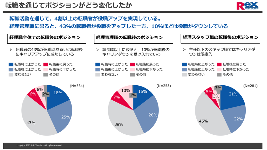 また転職によって一時的なランクダウンがあっても、3年以内に昇進して元の役職やポジションに戻るケースが多いという実態も判明。