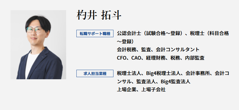 杓井:「メインは会計事務所、監査法人、コンサルティングファームです。特に会計事務所やコンサルについては、個人事務所から大手まで幅広くカバーしています。コンサル領域では、M&AやIPO、事業再生といった会計知識を活かせる案件に強みがありますね。