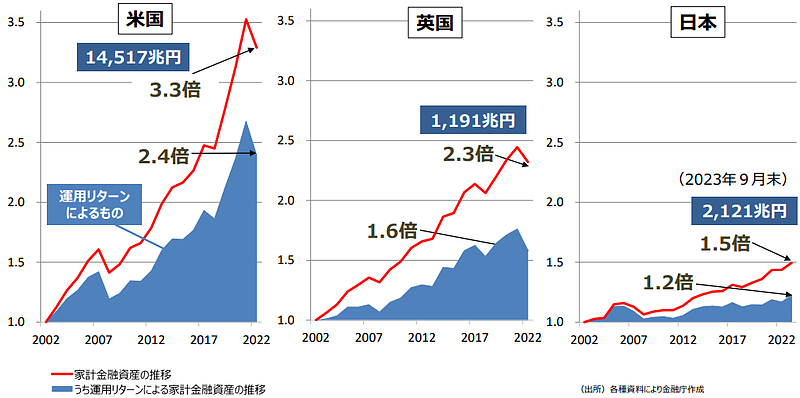 アメリカでは資産運用し、家計金融資産リターンが2.4倍。