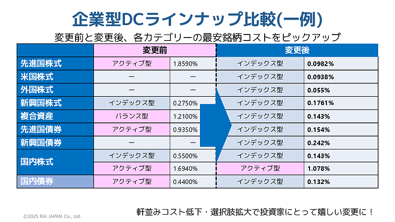RIA JAPANではかねてより企業型DC、職域向けファンドの高コスト傾向について警鐘を鳴らしてきました。