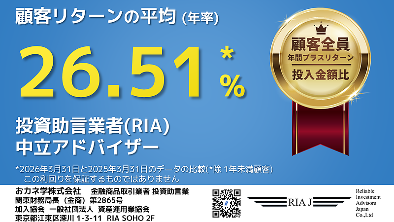 2025/3/31と2026/3/31を比較した顧客の年間リターン平均は26.51%*4でした。