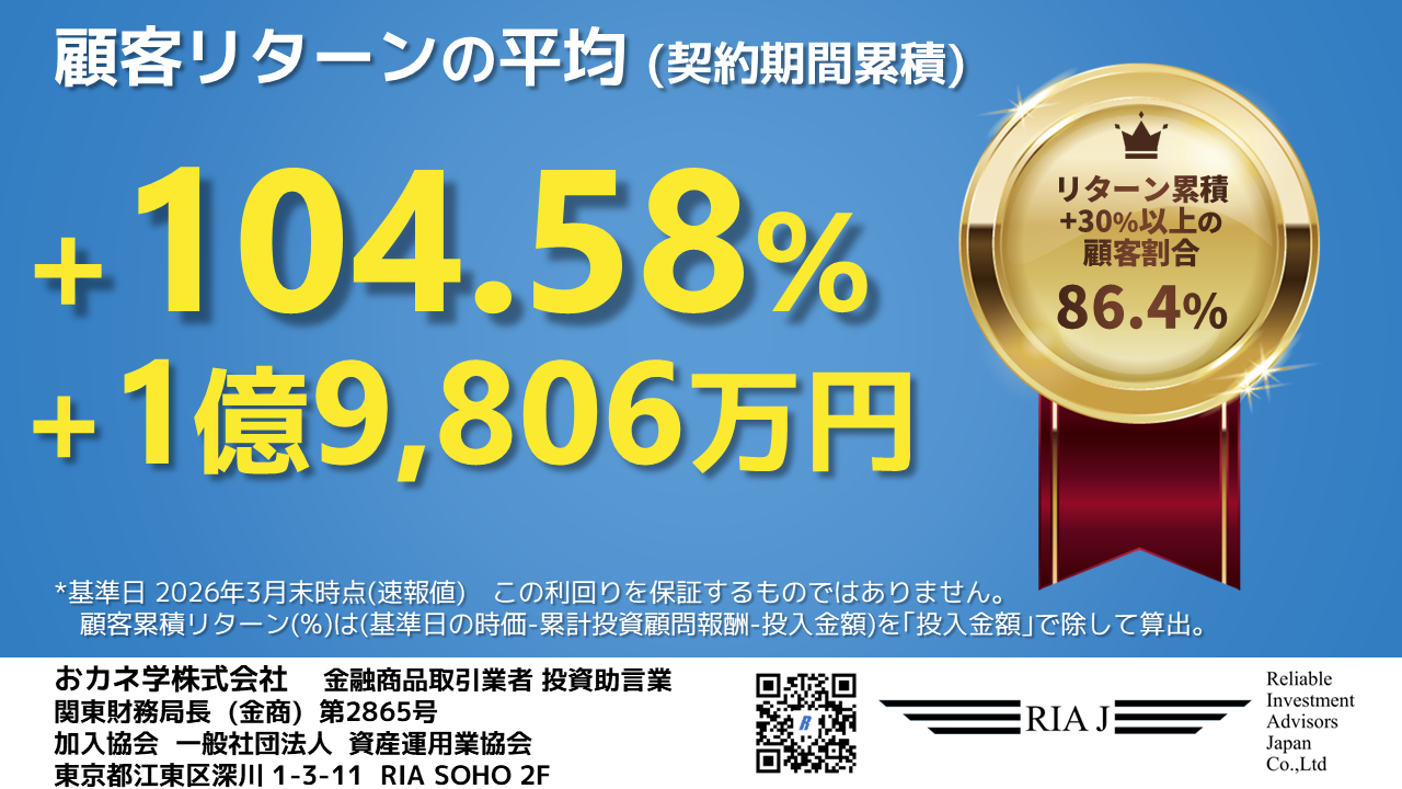2025/3/31と2026/3/31を比較した顧客の年間リターン平均は26.51%*4でした。