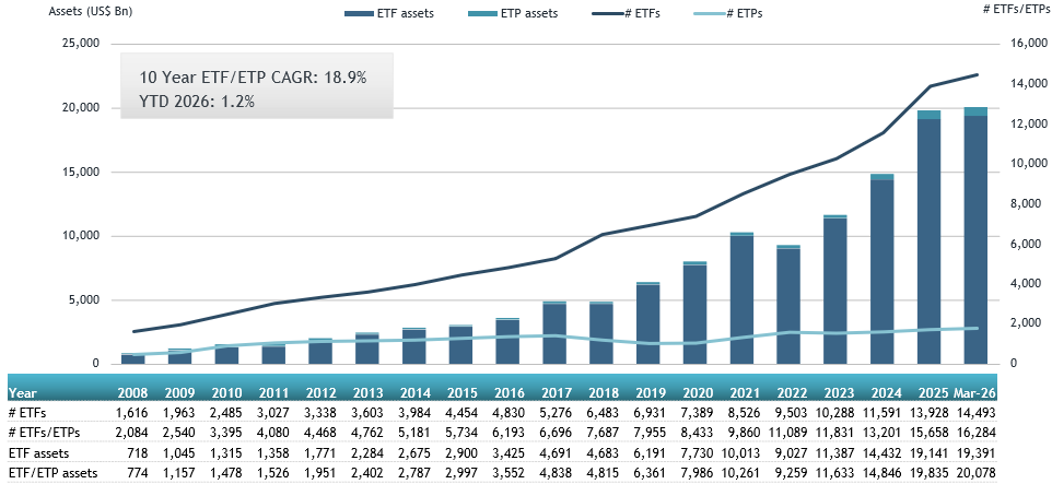 データ: ETFGI 2026年3月末時点(2026/4/15発表)、