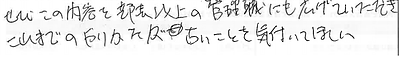 「お客様の声」では写真が1枚しか貼り付けられないので、こちらのコラムでお客様からいただいた「手書き」のメッセージをご紹介したいと思います。