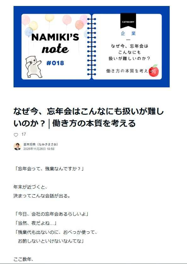 忘年会をどう設計するか、会社と社員の対話の重要性を書きました。