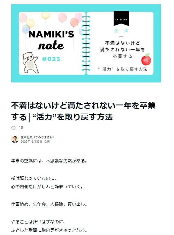 新年を変える具体的な3つの行動をnoteに書きました。