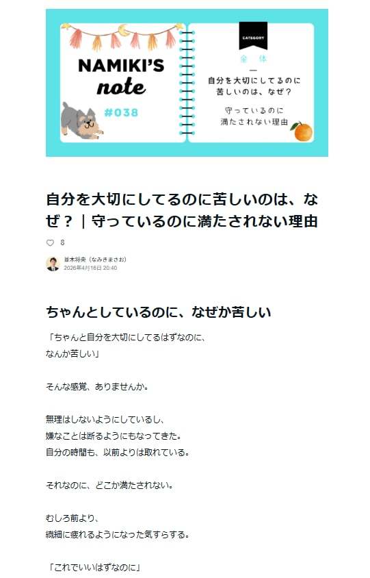 本当の意味で自分を大切にしている状態になると感じており、noteに綴りました。