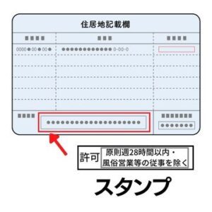 許可が下りると在留カードの裏に「許可」のスタンプが押されます。