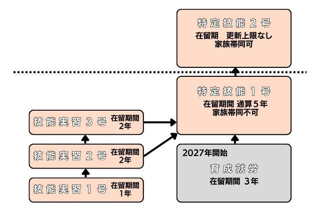 「育成就労」は「特定技能1号」への移行のための在留資格となります。