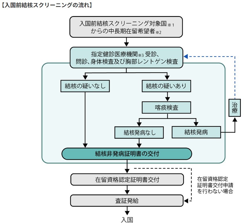 「結核非発病証明書」を在留資格認定証明書交付申請時に添付資料として提出をします。