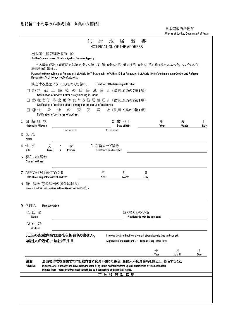 住居地届出書とは?