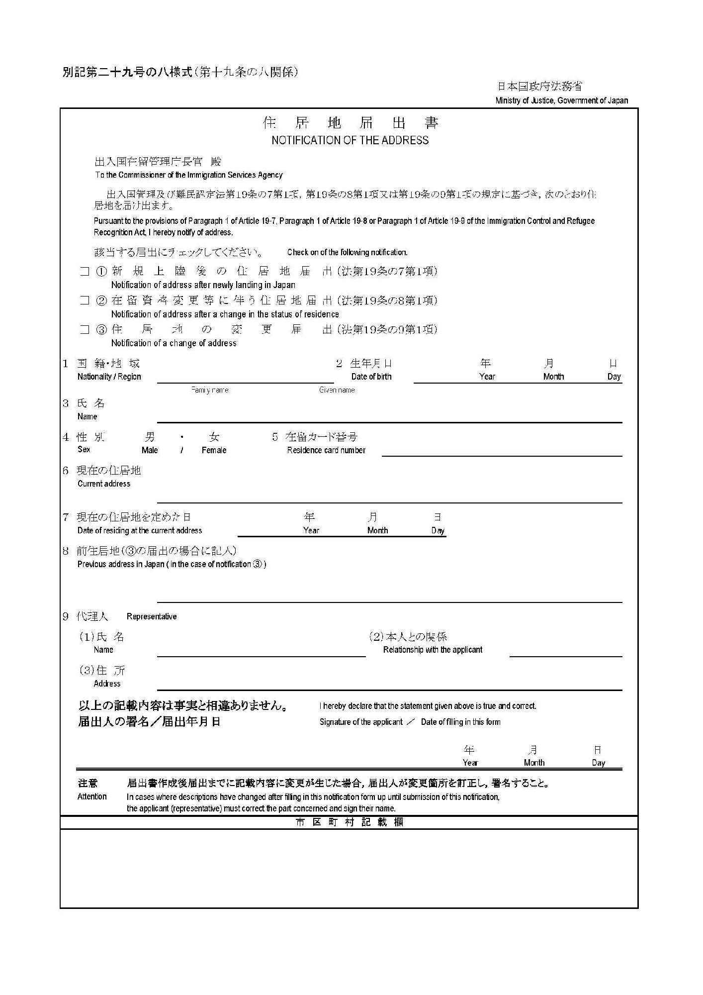 ・住居地届出書