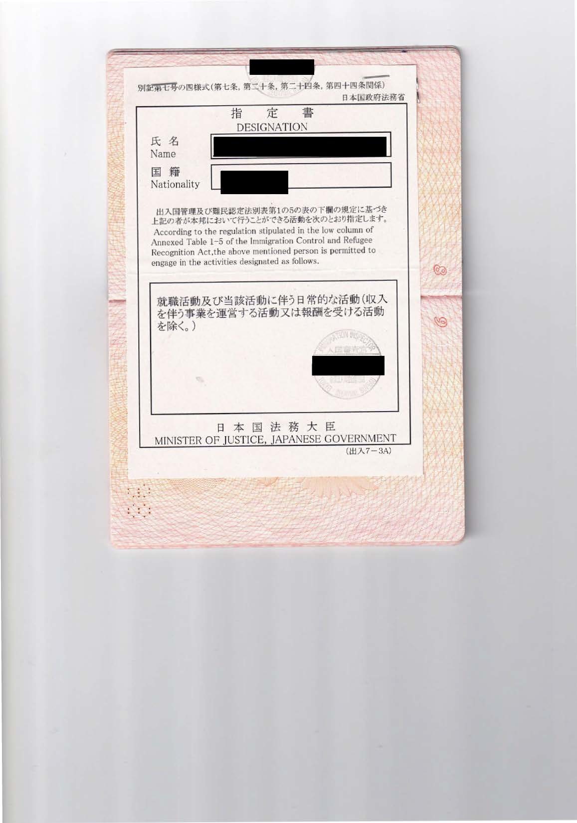 ビザ申請をおこなう上で「在留カードと指定書を見せてください」とお願いすると、外国人本人からも「指定書ってなんですか?」と聞かれることがありますが、指定書は日本での活動範囲を定める重要な書類です。指定書にある活動範囲を超えてしまうと外国人本人は不法就労罪、雇用した企業も不法就労助長罪(3年以下の懲役または300万円以下の罰金)に問われてしまいます。