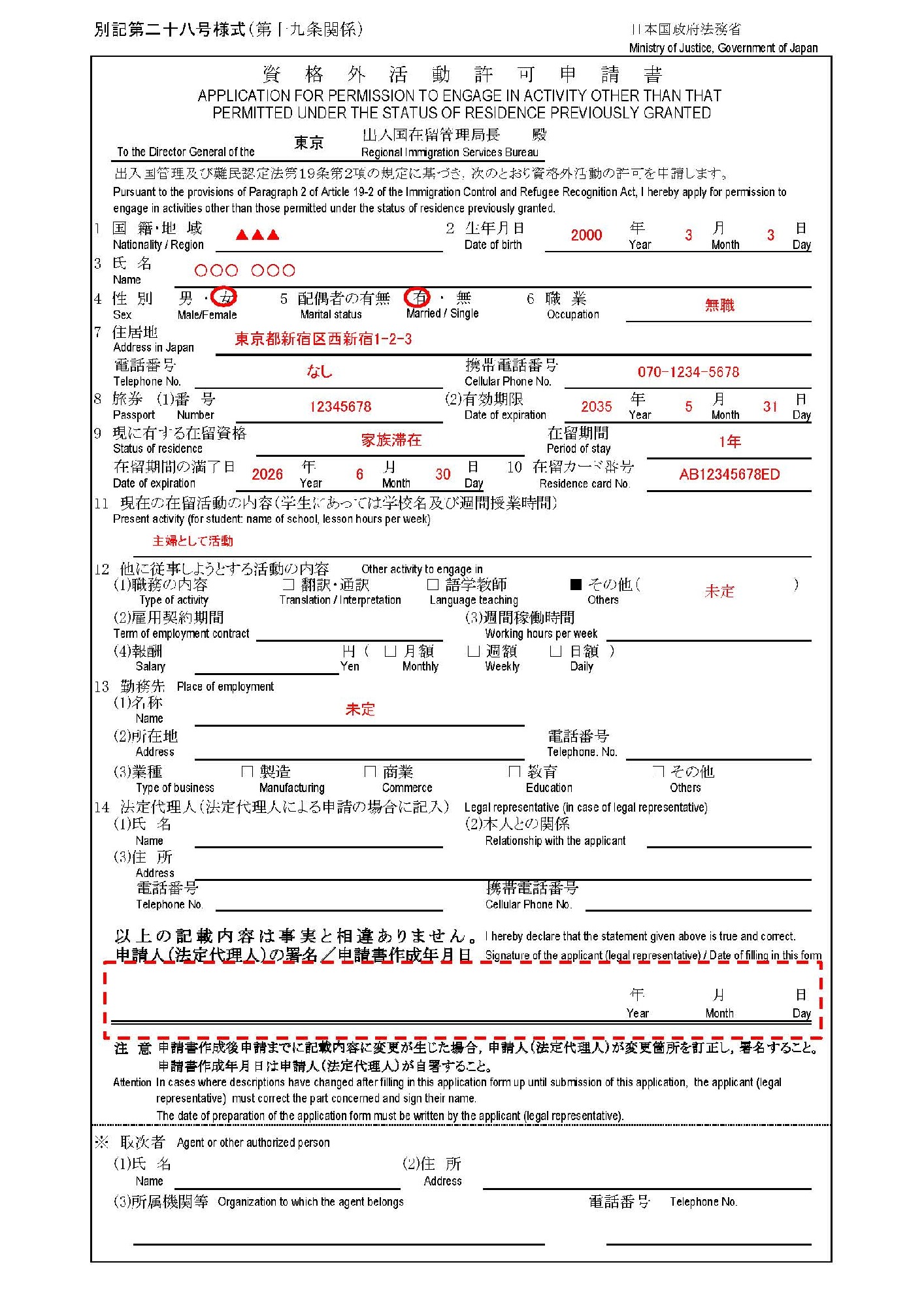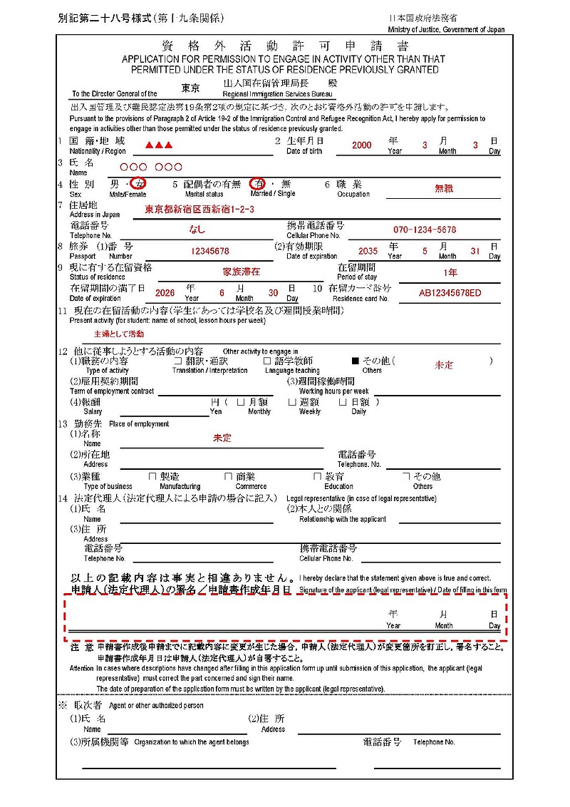 在留資格が「留学」や「家族滞在」で日本にいる方がアルバイトをしたい!と考えている場合、「資格外活動許可」というものを得る必要があります。その場合に必要な資格外活動許可申請書の書き方について記入例を参考にしながら解説をしていきます。これを見れば失敗せずに申請書を作成することができます。