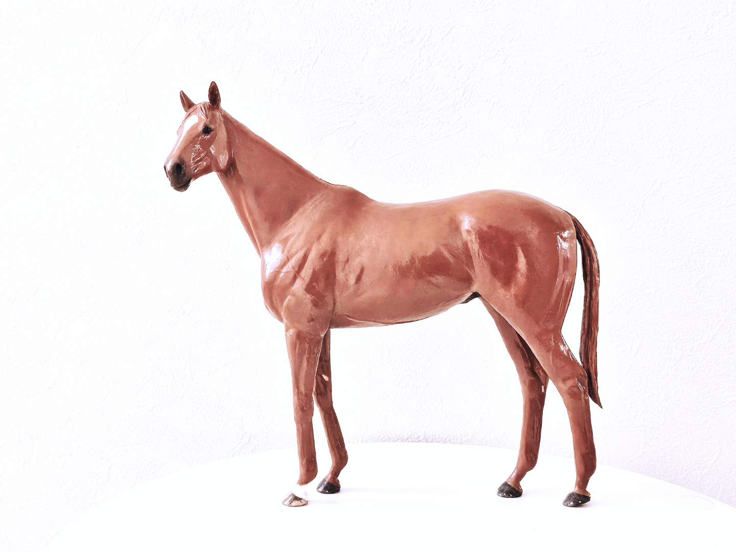 GⅢサイズ(体高約15㎝)のサンプル品としてテンポイントをモデルに制作いたしました。 GⅢでは、オプションでネームプレートを付けることもできます。 GⅢオーダー料金:50,000円(税込)
